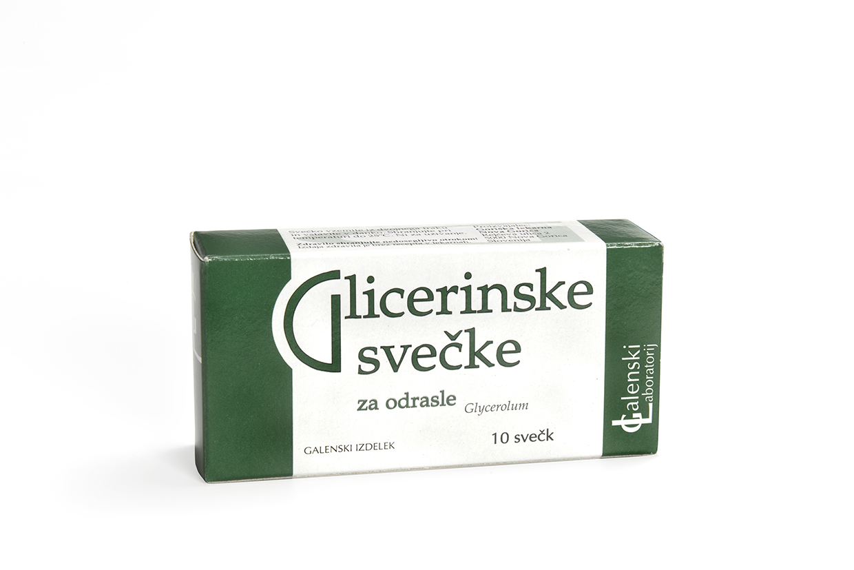 Ena Glicerinska svečka za odrasle vsebuje 1,89 g glicerola.